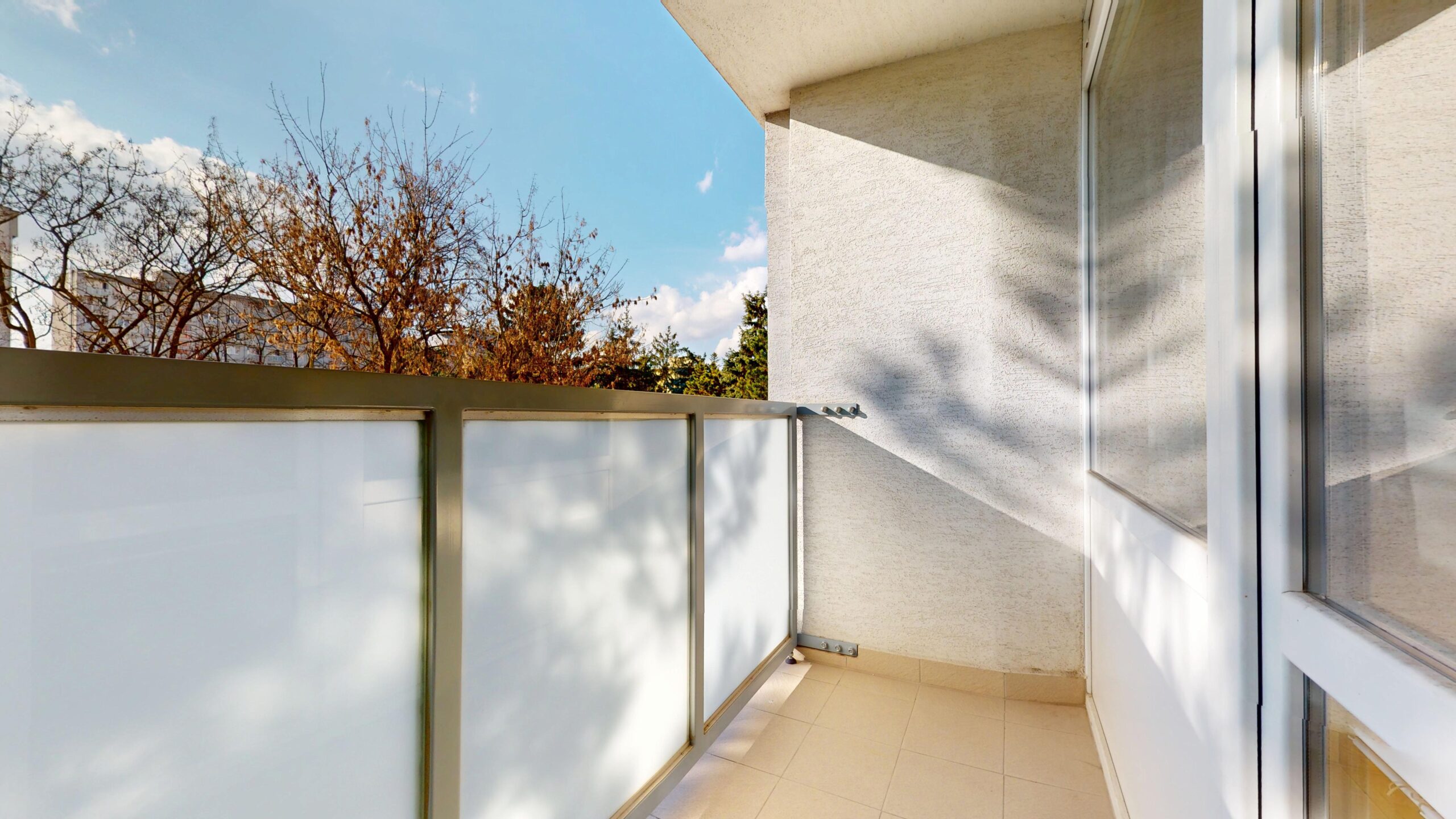 Z kuchyne vedie výstup na balkón (1,35 m²), ktorý je orientovaný na západ s množstvom zelene. Vďaka tomu si môžete v lete vychutnať raňajky aj vonku, pestovať bylinky alebo len tak relaxovať pri speve vtákov.