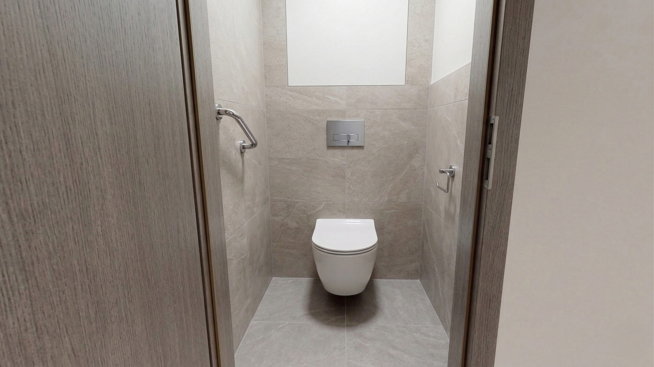 Toaleta je samostatná, oddelená od kúpeľne a je murovaná. Toto praktické usporiadanie oceníte najmä pri návštevách alebo spoločnom bývaní viacerých osôb.
